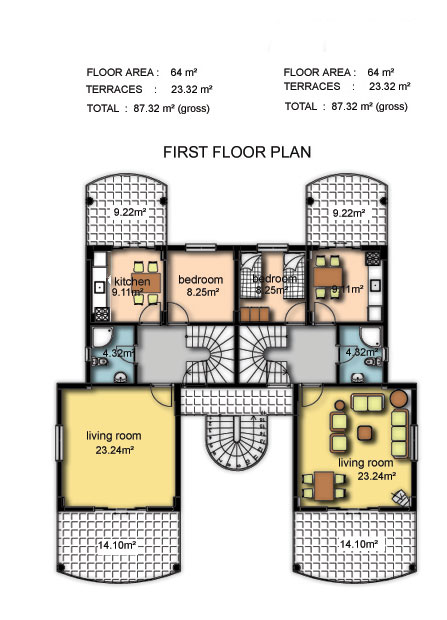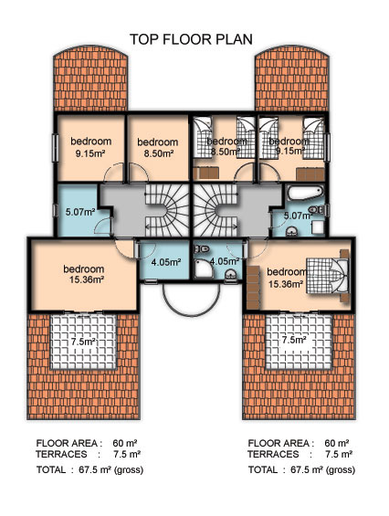 ÜST KATLAR DUBLEKS OLMAK ÜZERE HER BLOKTA 4 DAİRE BULUNMAKTADIR.